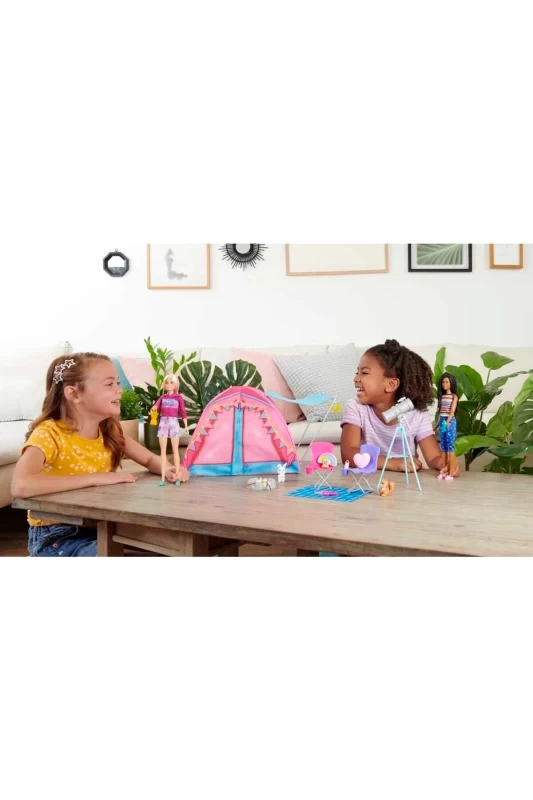 Bu Barbie It Takes Two™ oyun seti, Barbie® 'Malibu' ve Barbie® 'Brooklyn' Roberts ile açık hava maceralarına ilham verir. En iyi arkadaşların mükemmel kamp alanını yaratmak için ihtiyaç duyduğu her şey bu sette sizi beliyor.